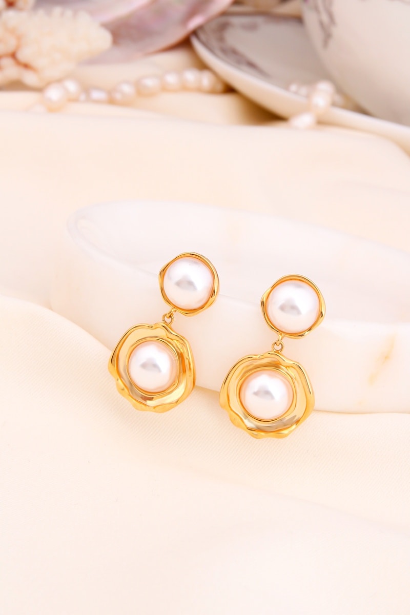 Pendientes chapados en oro amarillo con 2 perlas de imitación.