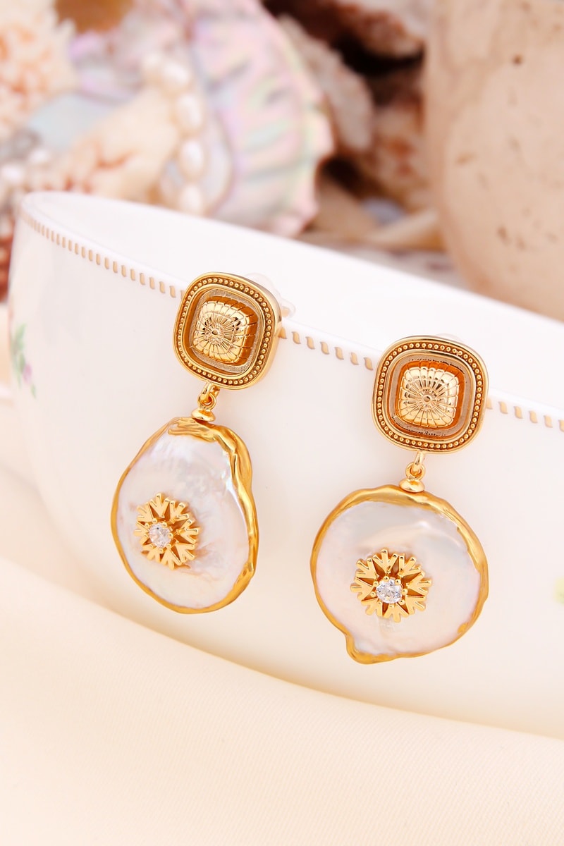 Pendientes - Chapado en oro amarillo y nácar