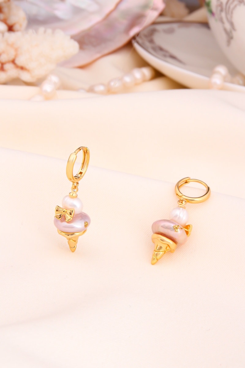 Pendientes chapados en oro amarillo con 2 perlas de imitación.