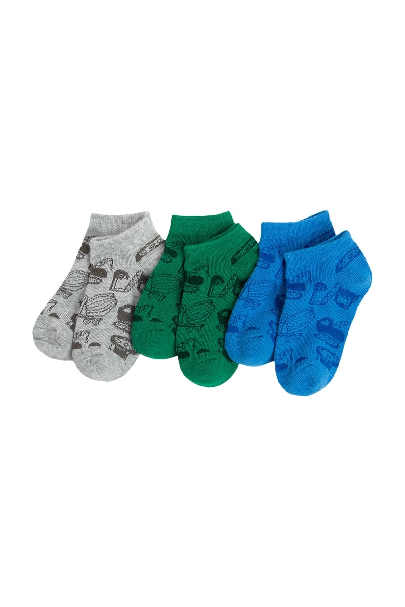 3 pares de calcetines cortos - Gris jaspeado, verde y azul