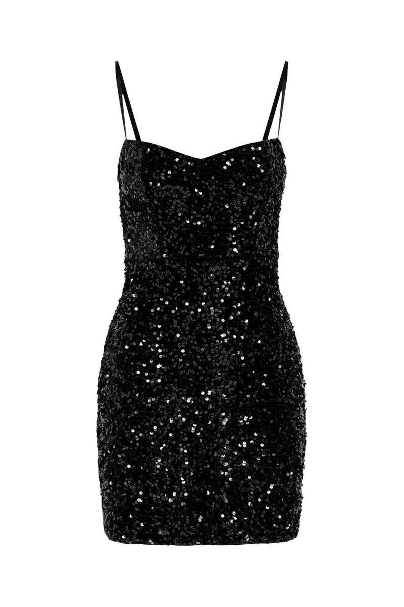 Vestido de tubo con lentejuelas.