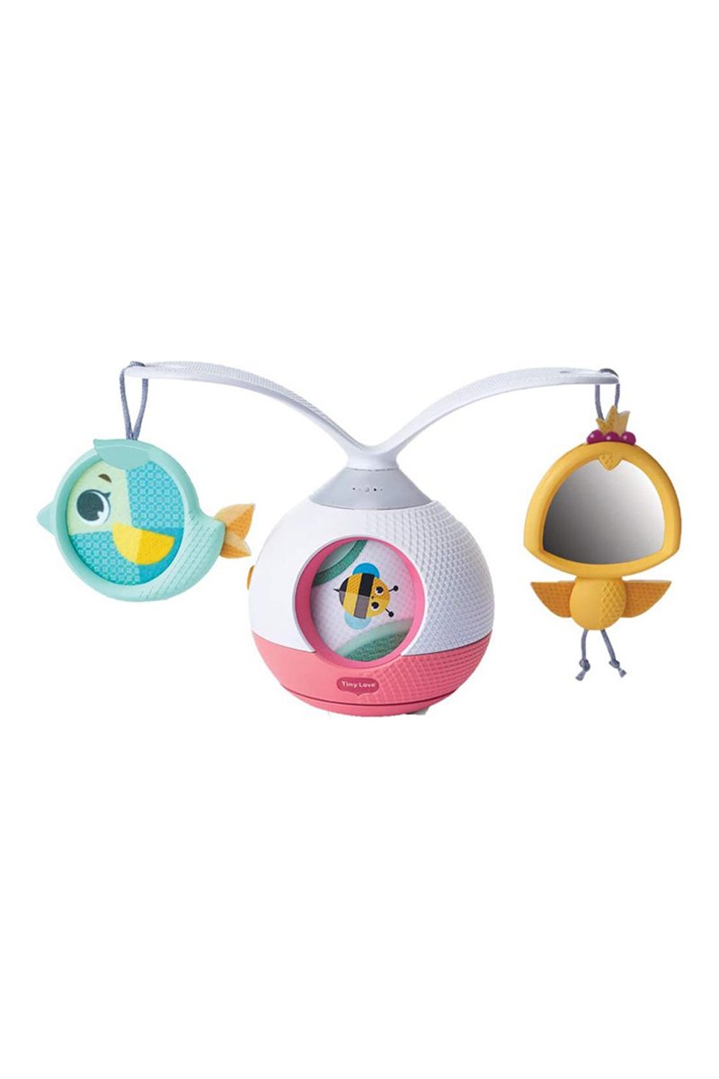 Móvil revolucionario para colgar o colocar que anima al bebé a jugar en posición ventral.