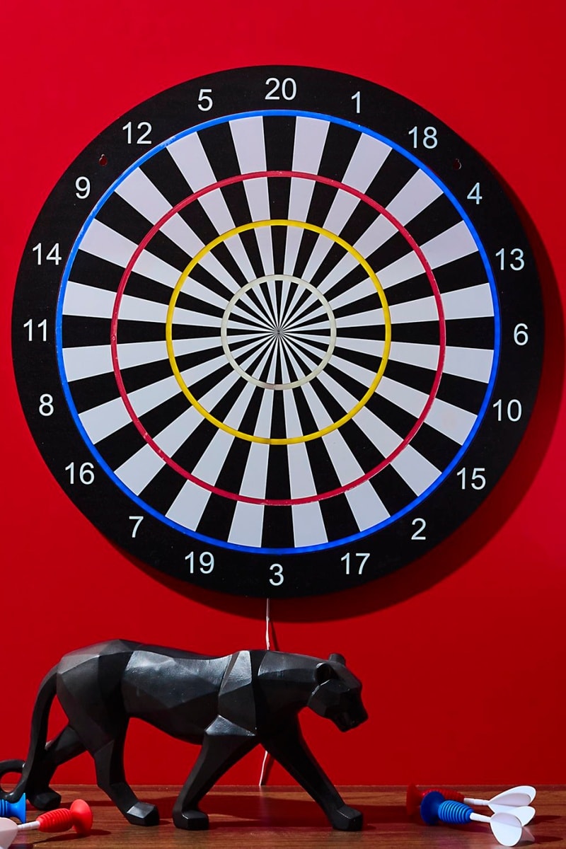 Reglas del juego: Cada participante debe lanzar dardos a la diana para intentar alcanzar el centro o el «triple 20».