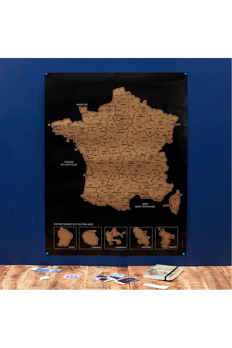 Mapa de Francia para rascar - 54 x 70 x 0,1 cm - Marrón