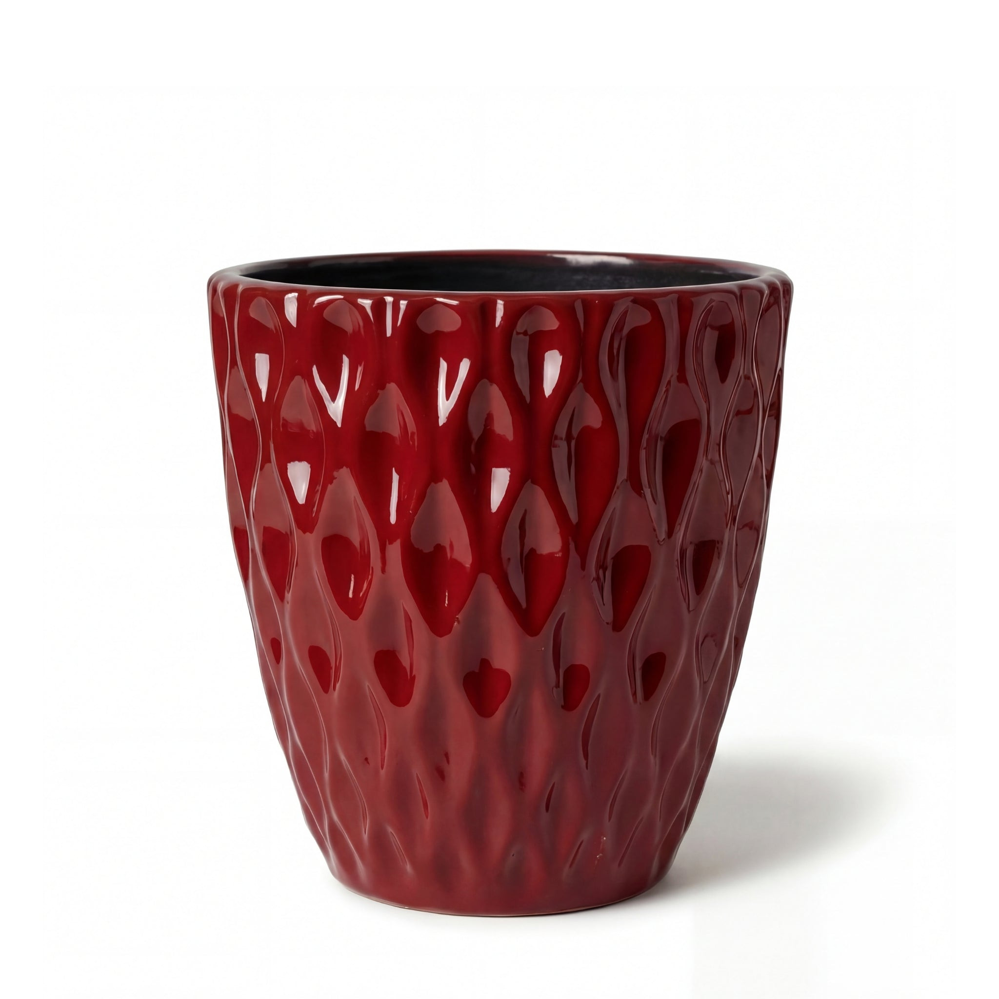 El Rojo imperial de esta maceta despliega una profundidad majestuosa, un color vibrante que confiere un aura real a su jardín.