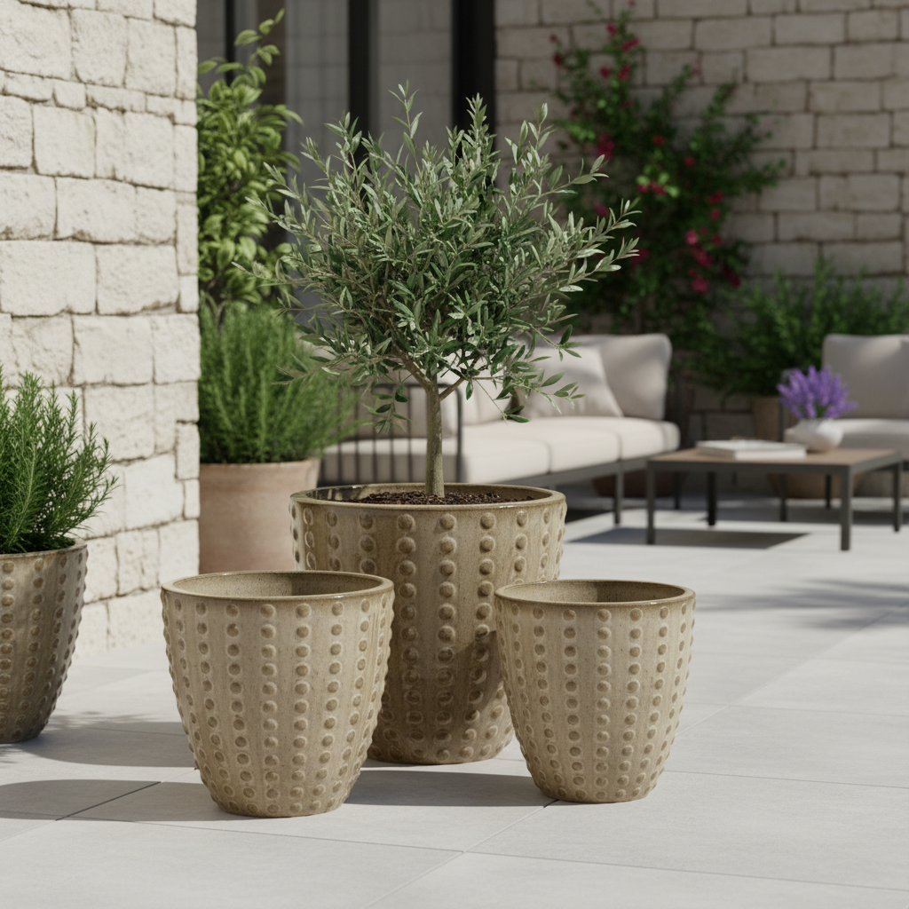 La colección Attila introduce un elemento de diseño audaz para sus espacios exteriores. Cada maceta, de terracota esmaltada y moldeada a mano, se distingue por su silueta atemporal adornada con una multitud de relieves circulares. Esta textura única invita tanto a la vista como al tacto, otorgando a la maceta una personalidad inimitable. Diseñada para el jardín y la terraza, Attila resiste las inclemencias del clima, asegurando un entorno elegante y duradero para sus plantas. Elija la originalidad de una forma que marca la diferencia.