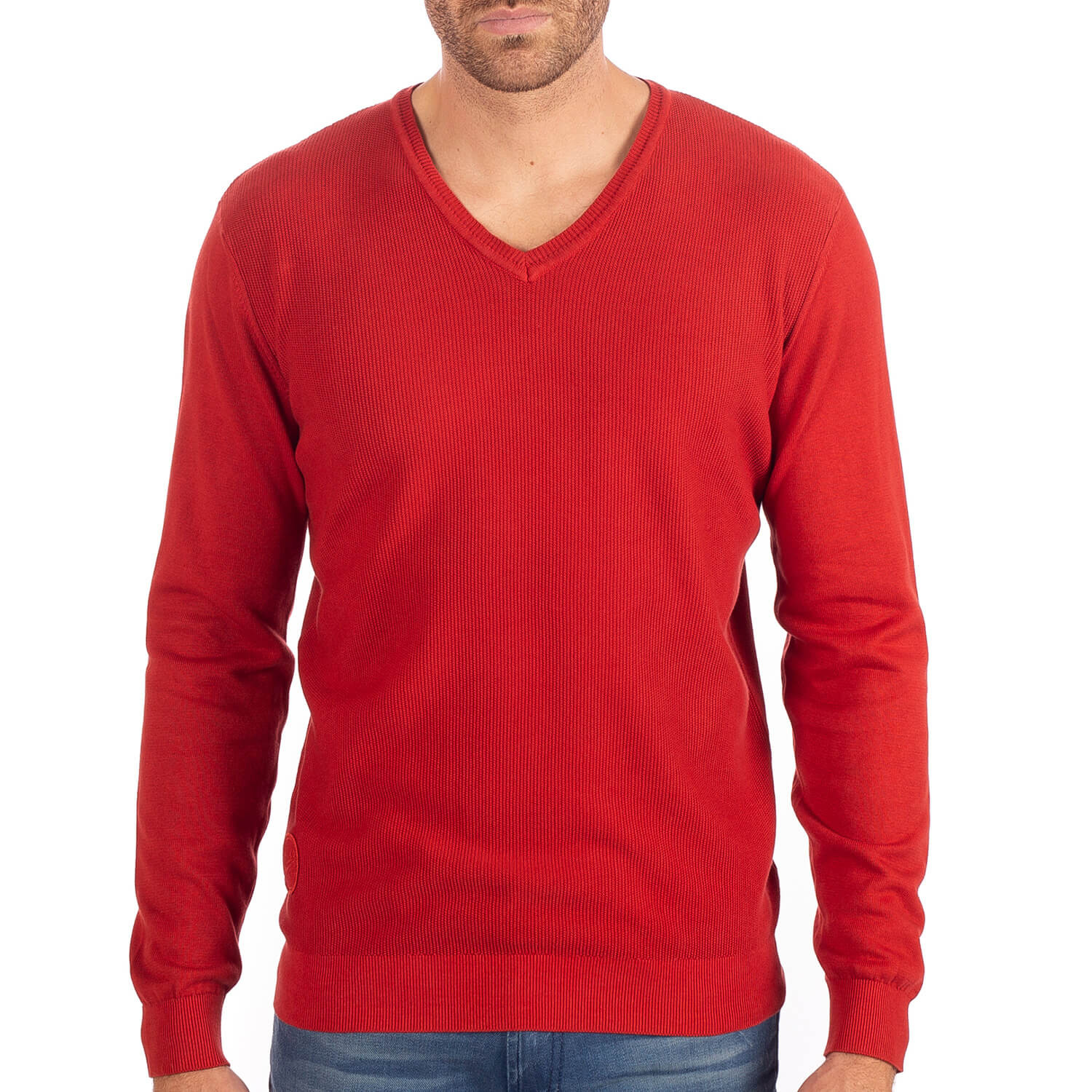 Suéter naranja con cuello en v y diseño de panal para hombre