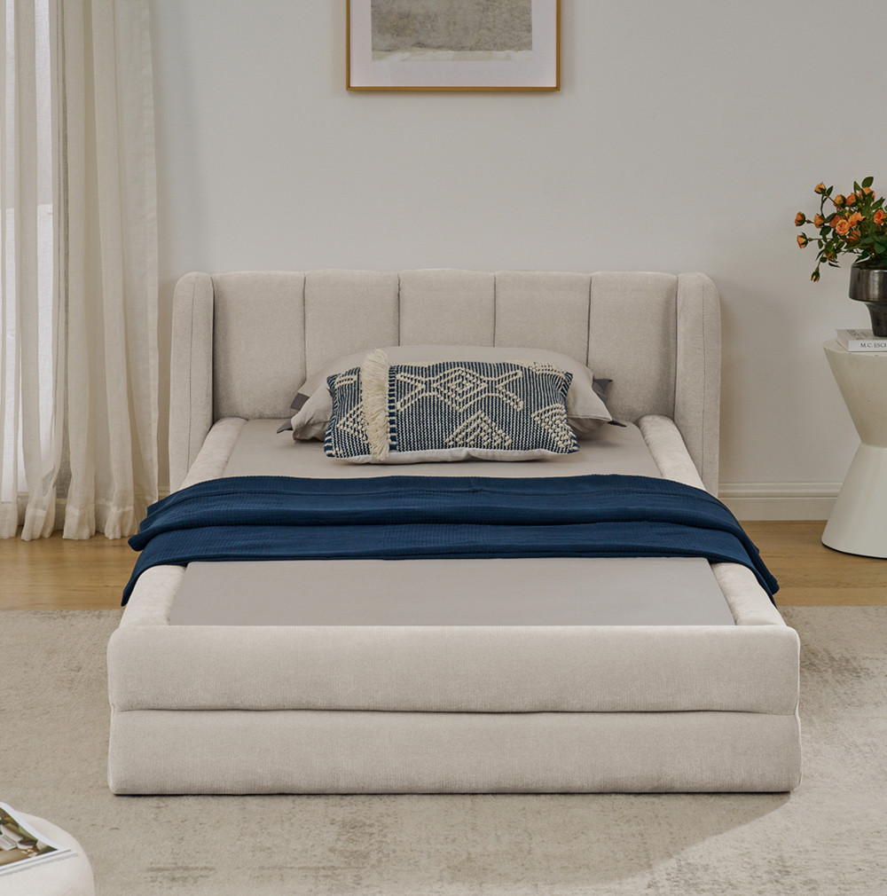 Cama individual 90*200 cm tejido de chenilla suave para la piel respaldo cómodo también apta como cama infantil beige (sin colchón)