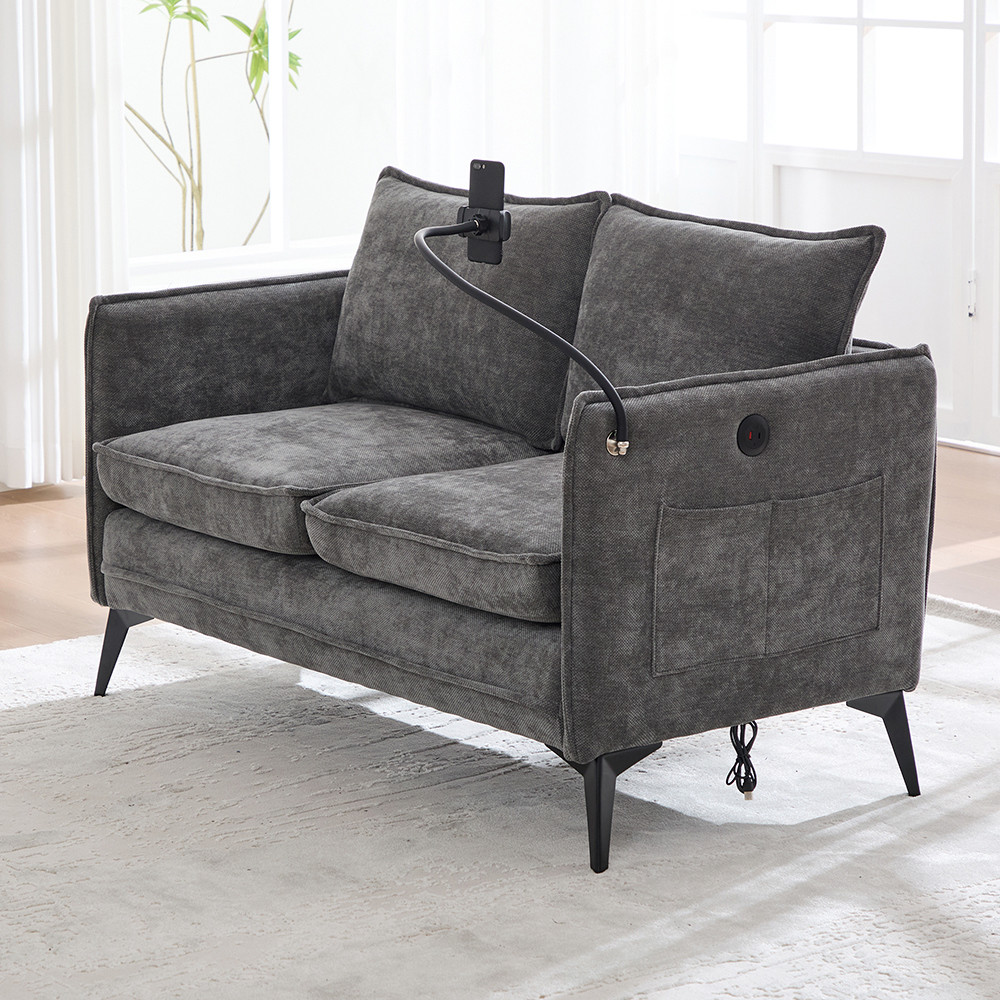 Sofá doble moderno de tela: bolsillo lateral + soporte ajustable para teléfono, para salón/dormitorio/balcón