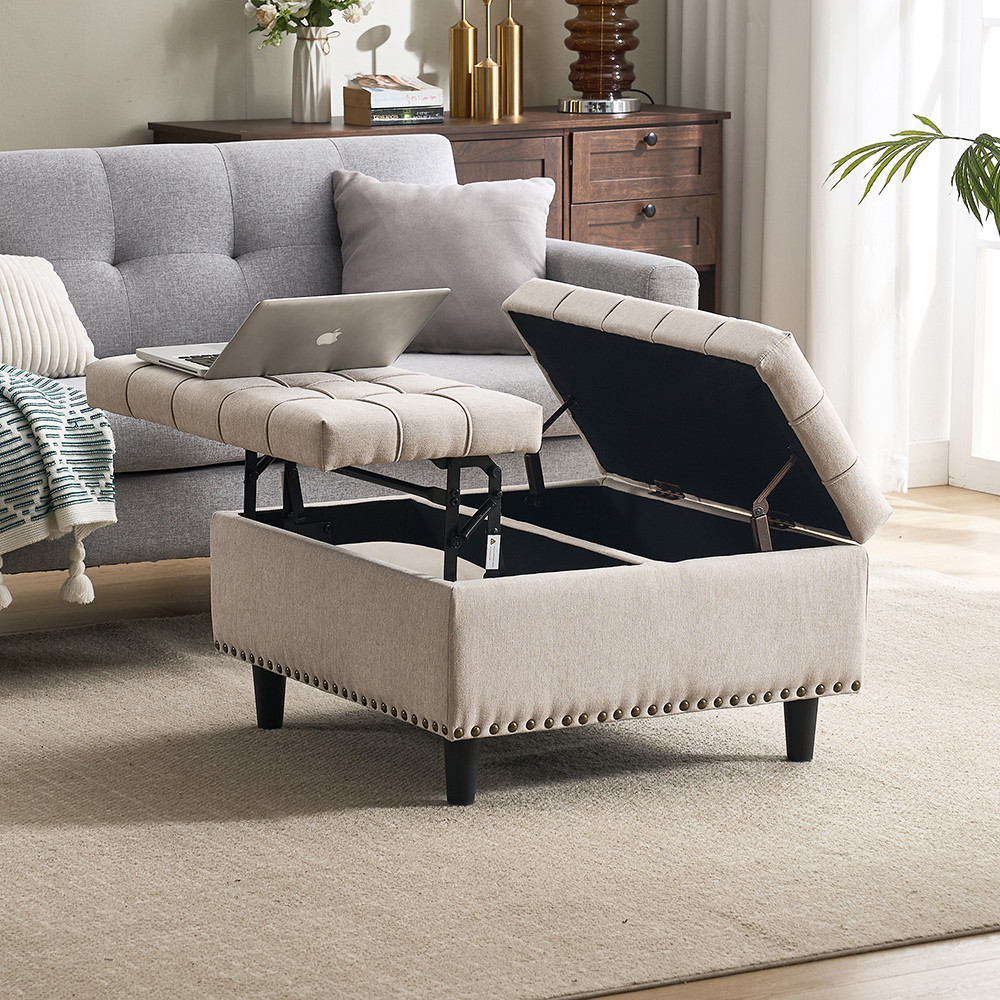 Silla grande cuadrada: almacenamiento, banco elevable con espacio de almacenamiento, caja de almacenamiento acolchada en color beige