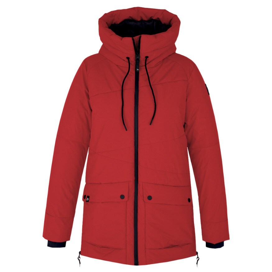 El abrigo de invierno Hannah Rebecca para mujer es la opción ideal para la ciudad y el tiempo libre. La membrana Resstex 5000 con tratamiento DWR asegura resistencia a la lluvia y a la nieve húmeda, y el aislamiento Duratherm Classic con un hilo de poliéster de calidad es ligero, suave y destaca por sus propiedades de aislamiento térmico. Gracias a su longitud, este abrigo siempre mantiene tu espalda caliente y la capucha con cordón de ajuste te protege de las condiciones meteorológicas más adversas. Su corte regular hace que el abrigo se ajuste bien, y sus costuras decorativas le dan un toque interesante. Dos bolsillos de fuelle están cubiertos por solapas y hay un bolsillo con cremallera en el interior. Las aberturas laterales de la cremallera son muy prácticas.