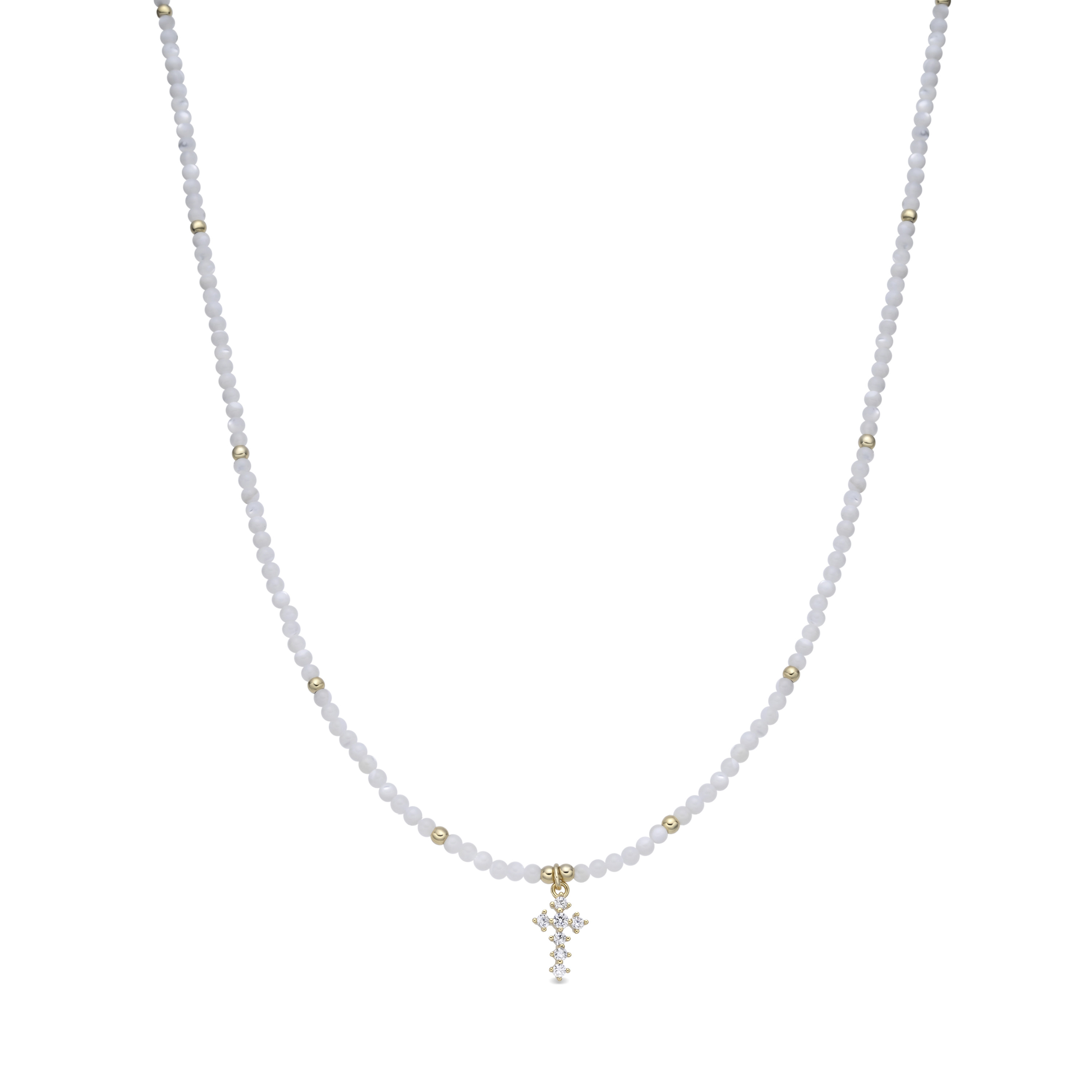 Collar Nyali de Madreperla Blanca acabado en Oro Amarillo 18k