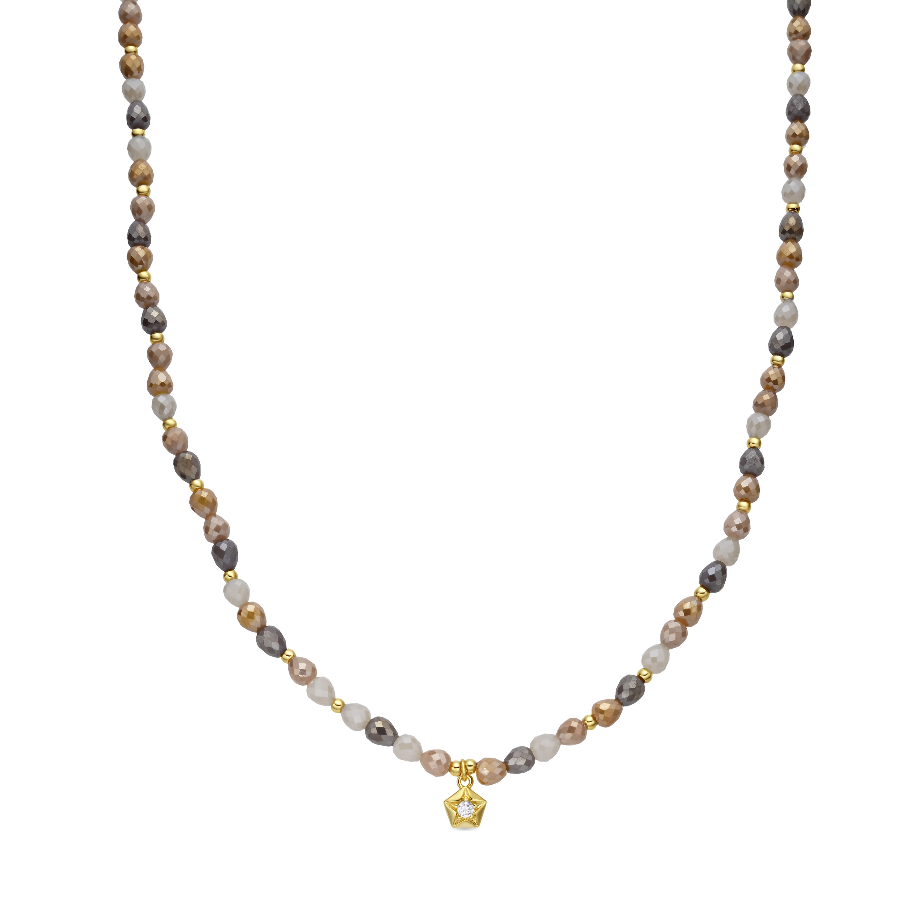 Collar Likdu de Cristal Marron acabado en Oro Amarillo 18k