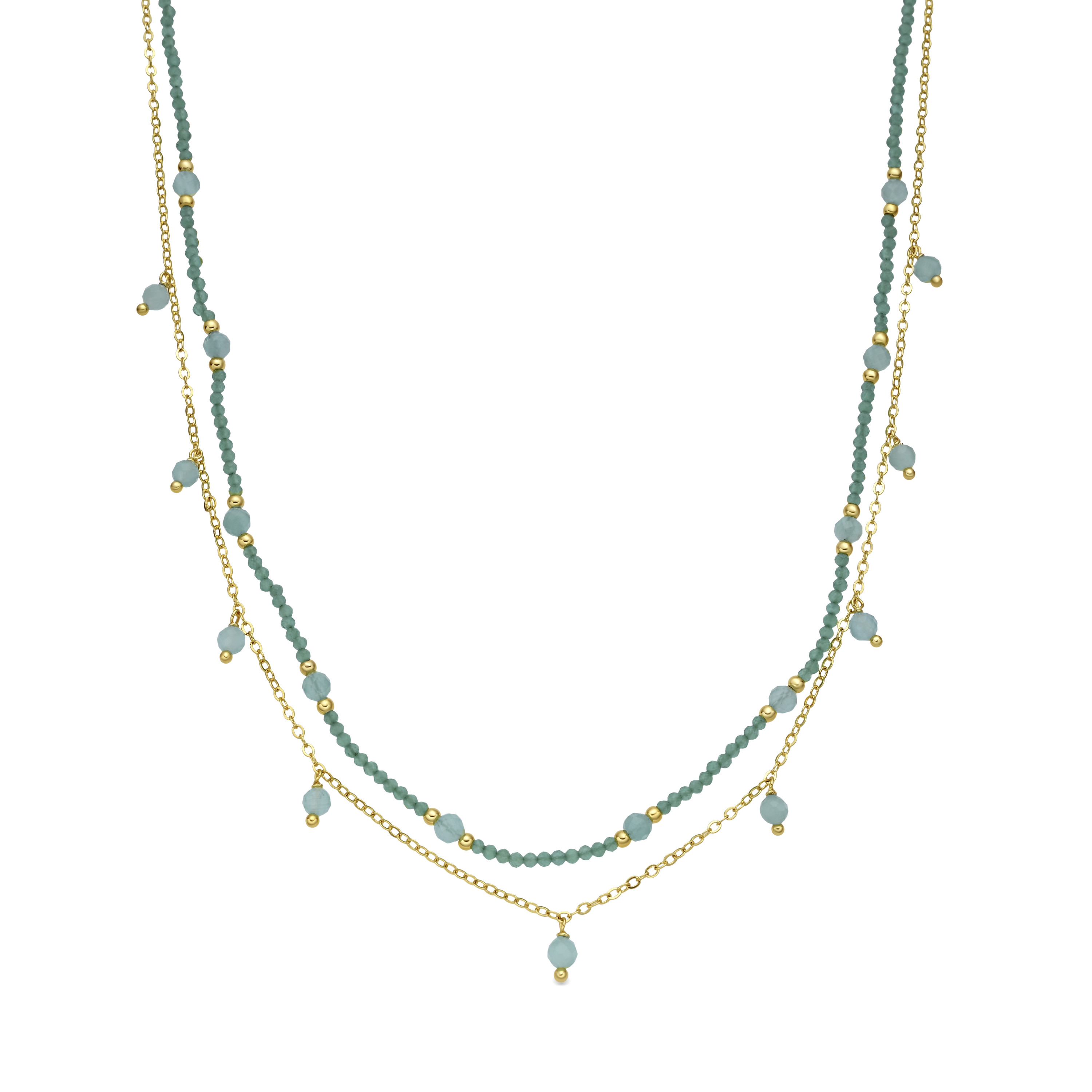 Collar Aira de Cristal Verde acabado en Oro Amarillo 18k