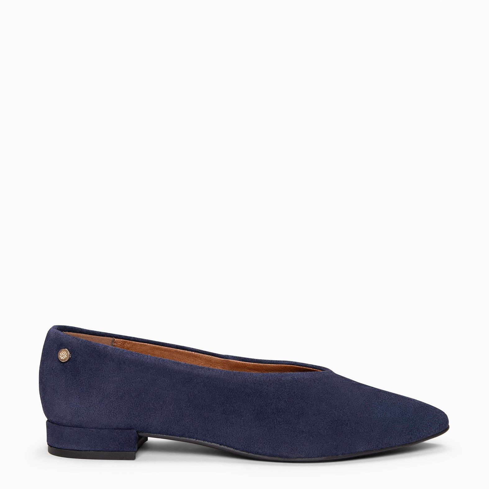 URBAN LACY - Bailarina con tacón bajo en piel de serraje MARINO