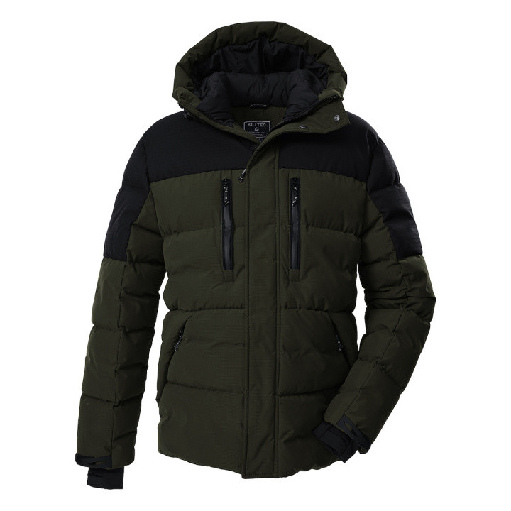 La chaqueta de hombre Killtec es ideal para enfrentar el frío en todas las estaciones. Impermeable y cortaviento (columna de agua de 10,000 mm), también es transpirable (permeabilidad al vapor de agua de 3,000 g/m²/24 h). Su diseño de bloques de color de tendencia le confiere un estilo único. La capucha y los puños son ajustables. Los puños de Lycra con orificios para los pulgares aseguran un buen ajuste. Los dos bolsillos laterales y el bolsillo del pecho tienen cremalleras para evitar perder sus pertenencias. Un bolsillo interior para el teléfono móvil ofrece un espacio de almacenamiento adicional. La cremallera frontal oculta cuenta con una protección para la barbilla para evitar pellizcos. Esta chaqueta está tratada sin PFAS y es parcialmente fabricada con materiales reciclados. - Chaqueta acolchada para hombre con capucha ajustable - Cortaviento, repelente al agua (10 000 mm) - Transpirable (3 000 g/m²/24 h) - Impermeabilización sin PFAS y materiales reciclados - Puños ajustables con puños de lycra - Cremallera con protección para la barbilla - Dos bolsillos en el pecho y laterales, bolsillo interior