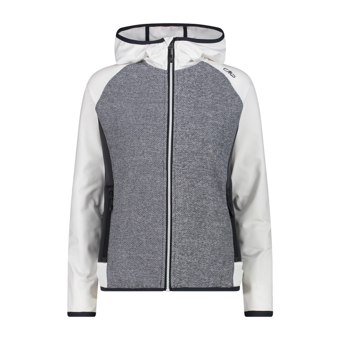 Chaqueta híbrida que combina las características de dos tratamientos de polar diferentes. En la parte delantera, el Knit Tech ofrece calidez y comodidad, mientras que las mangas y la espalda están en Stretch performance, un material particularmente elástico y ergonómico que garantiza la libertad de movimiento y un ajuste perfecto al cuerpo. La prenda se completa con dos bolsillos laterales y uno en la manga con cremallera, un bajo de chaqueta y puños elásticos, así como una cremallera frontal con solapa cortaviento y anti-fricción.