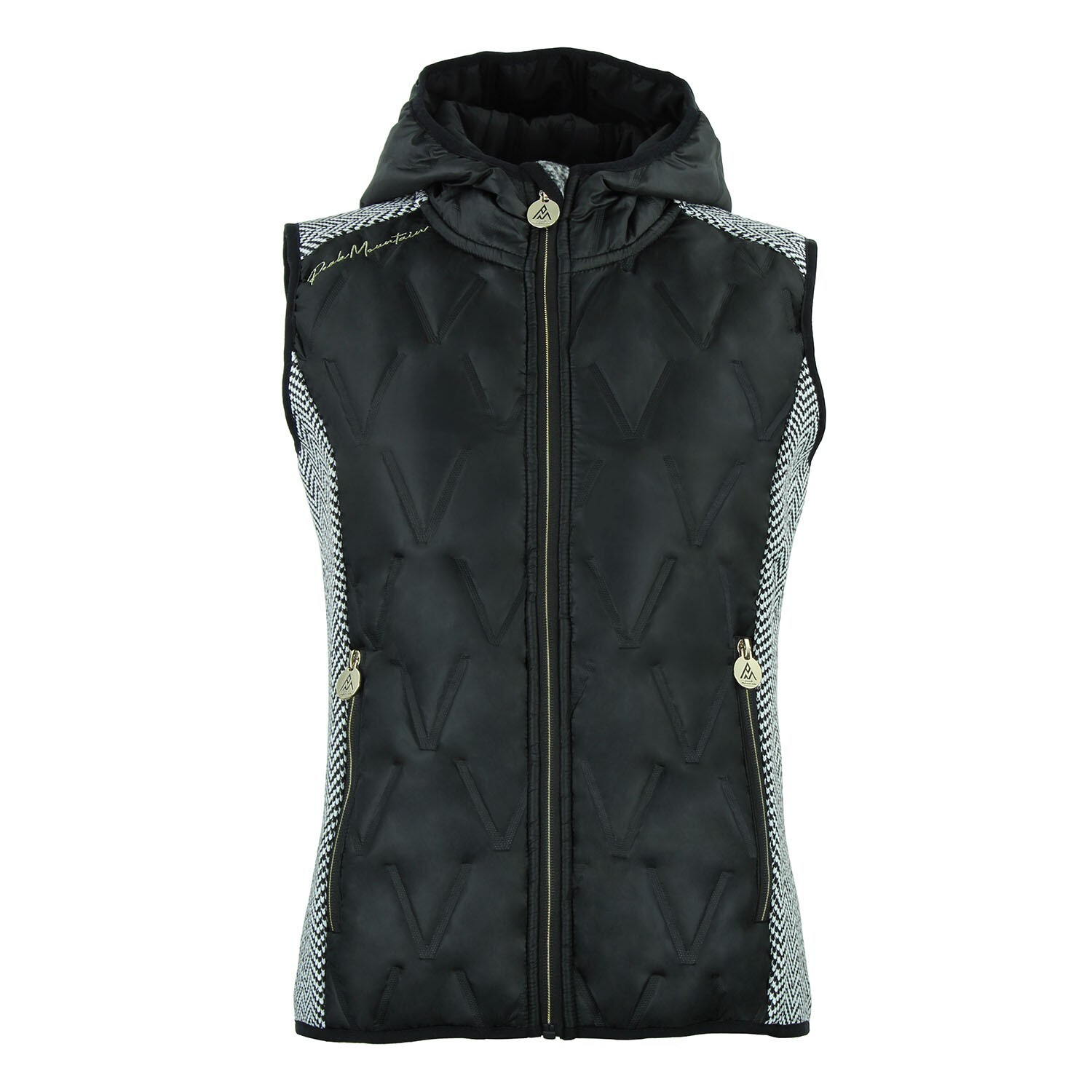 Chaleco polar con cremallera en dos materiales Cierre de cremallera completa Sin mangas Chaleco con capucha 2 bolsillos laterales con cremallera Inscripción Peak Mountain Motivos jacquard Paneles acolchados