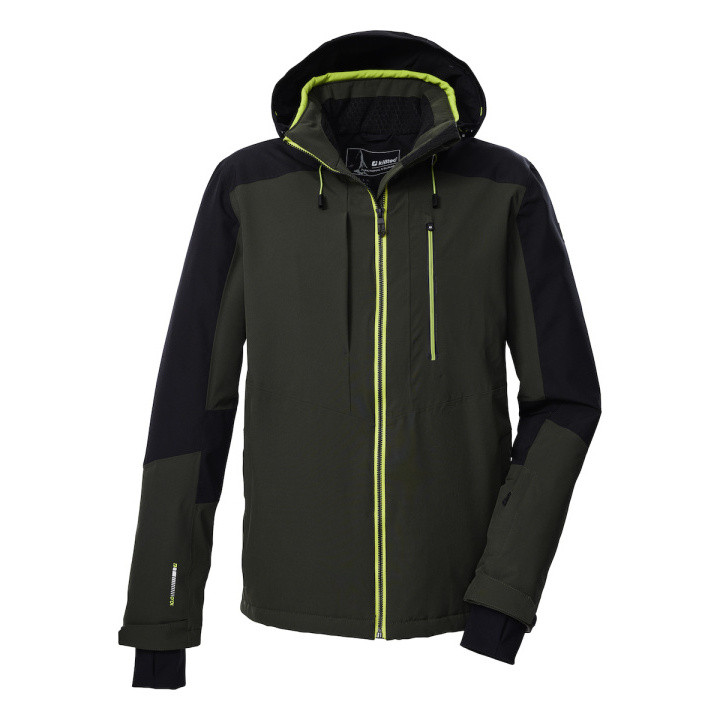 La veste de ski homme Killtec allie un design tendance à des caractéristiques adaptées aux pistes. Coupe-vent et imperméable grâce à ses coutures étanches, ses fermetures éclair étanches et une colonne d'eau de 10 000 mm (notre conseil : il est recommandé de l'imperméabiliser de temps en temps). Respirante, elle offre une perméabilité à la vapeur d'eau de 3 000 g/m²/24 h. À l'intérieur, elle est équipée d'une jupe pare-neige antidérapante, d'une poche pour masque de ski et d'une poche pour téléphone portable. Quatre poches zippées et une poche pour forfait de ski offrent un espace de rangement supplémentaire. La largeur de la capuche amovible et du bas de la veste est ajustable. Les poignets en Lycra avec passe-pouces empêchent le froid et le vent de pénétrer. Cette veste est imprégnée sans PFAS et est partiellement fabriquée à partir de matériaux recyclés. - Veste de ski homme avec capuche amovible - Imperméabilité : 10 000 mm, coutures étanches - Respirante, perméabilité à la vapeur d'eau : 3 000 g/m²/24 h - Bandeau pare-neige antidérapant, fermetures éclair étanches - Imperméabilisation sans PFAS, partiellement fabriquée à partir de matériaux recyclés - Ourlet ajustable, poignets ajustables avec manchettes en Lycra - Poches latérales et poitrine, poche pour forfait de ski, poche pour masque de ski &