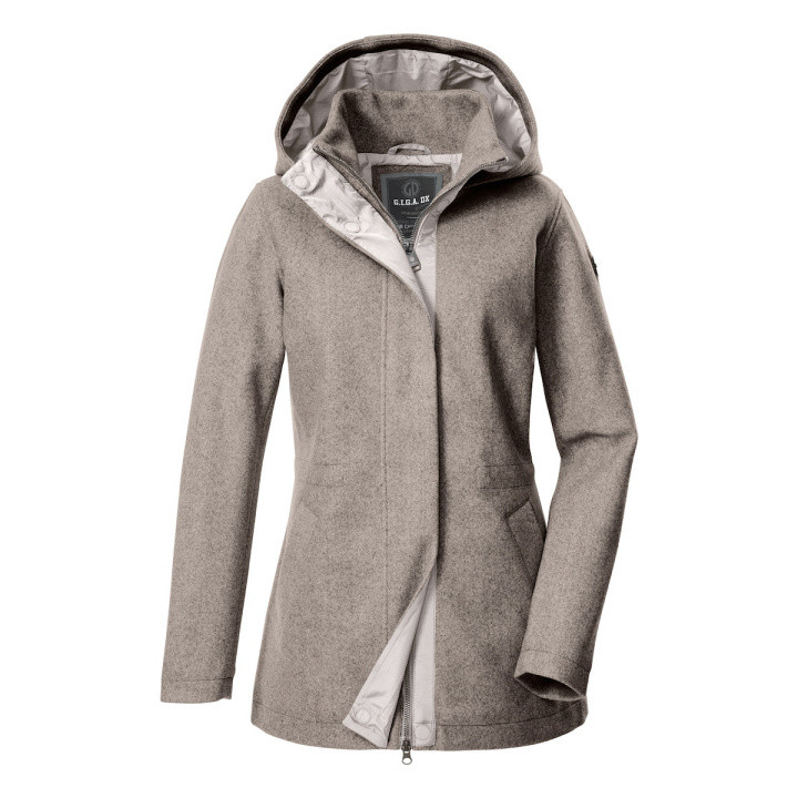 La chaqueta G.I.G.A. DX de apariencia lana es perfecta como chaqueta de transición durante los días frescos. La cremallera oculta de 2 vías puede abrirse por arriba y por abajo, ofreciendo así libertad de movimiento. El ancho en la cintura es ajustable según tus deseos. La chaqueta también cuenta con una capucha y dos bolsillos laterales. - Chaqueta mujer de apariencia lana - resistente al viento - cremallera oculta de 2 vías - regulación de cintura, capucha, bolsillos laterales - impregnación sin PFAs, material reciclado