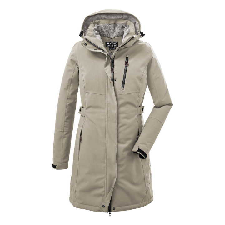Parka funcional con capucha desmontable Material Poliéster completamente mate, 100% Poliéster Forro Polar Teddy, 100% Poliéster / Tafetán, 100% Poliéster Propiedades Laminado TPU transpirable, columna de agua 10.000 mm, permeabilidad al vapor de humedad 3.000 g/m²/24 h, todas las costuras soldadas, 100% impermeable, sin PFC Relleno 100% Poliéster