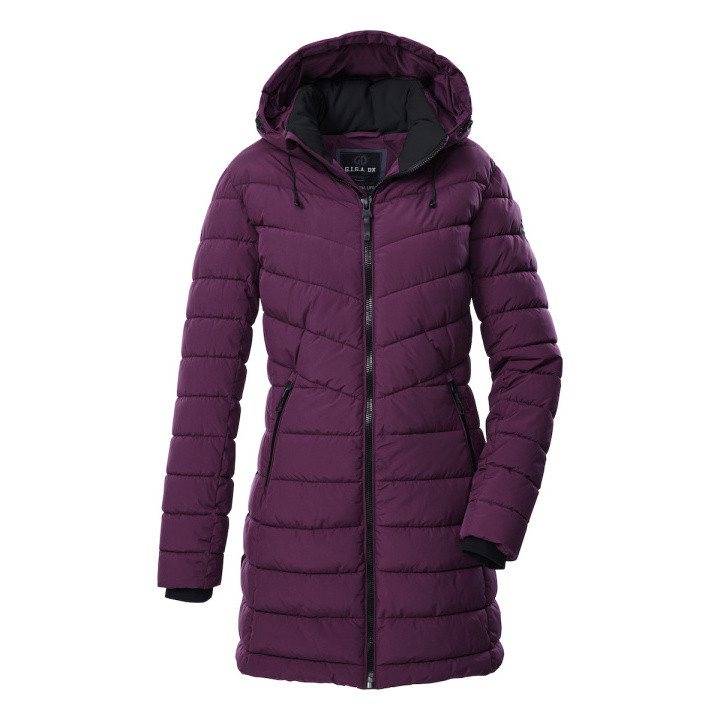 El parka acolchado bien relleno de G.I.G.A DX se destaca por su estilo relajado y su acolchado refinado. El parka es repelente al agua y cortaviento. La capucha es ajustable y se puede quitar si es necesario. Los bordes de punto en las muñecas mantienen el calor y son especialmente cómodos. La cremallera de 2 vías permite una gran libertad de movimiento. Dos bolsillos con cremallera y un bolsillo interior ofrecen suficiente espacio de almacenamiento para las cosas importantes. Este parka ha sido tratado sin PFAS y está fabricado en parte a partir de materiales reciclados. - Parka funcional para mujeres en aspecto de plumón con capucha desmontable - Cortaviento y repelente al agua, columna de agua de 10,000 mm - Cremallera de 2 vías, bolsillos prácticos - Tratamiento sin PFAS, fabricado en parte a partir de materiales reciclados - Bordes de punto cómodos, relleno grueso