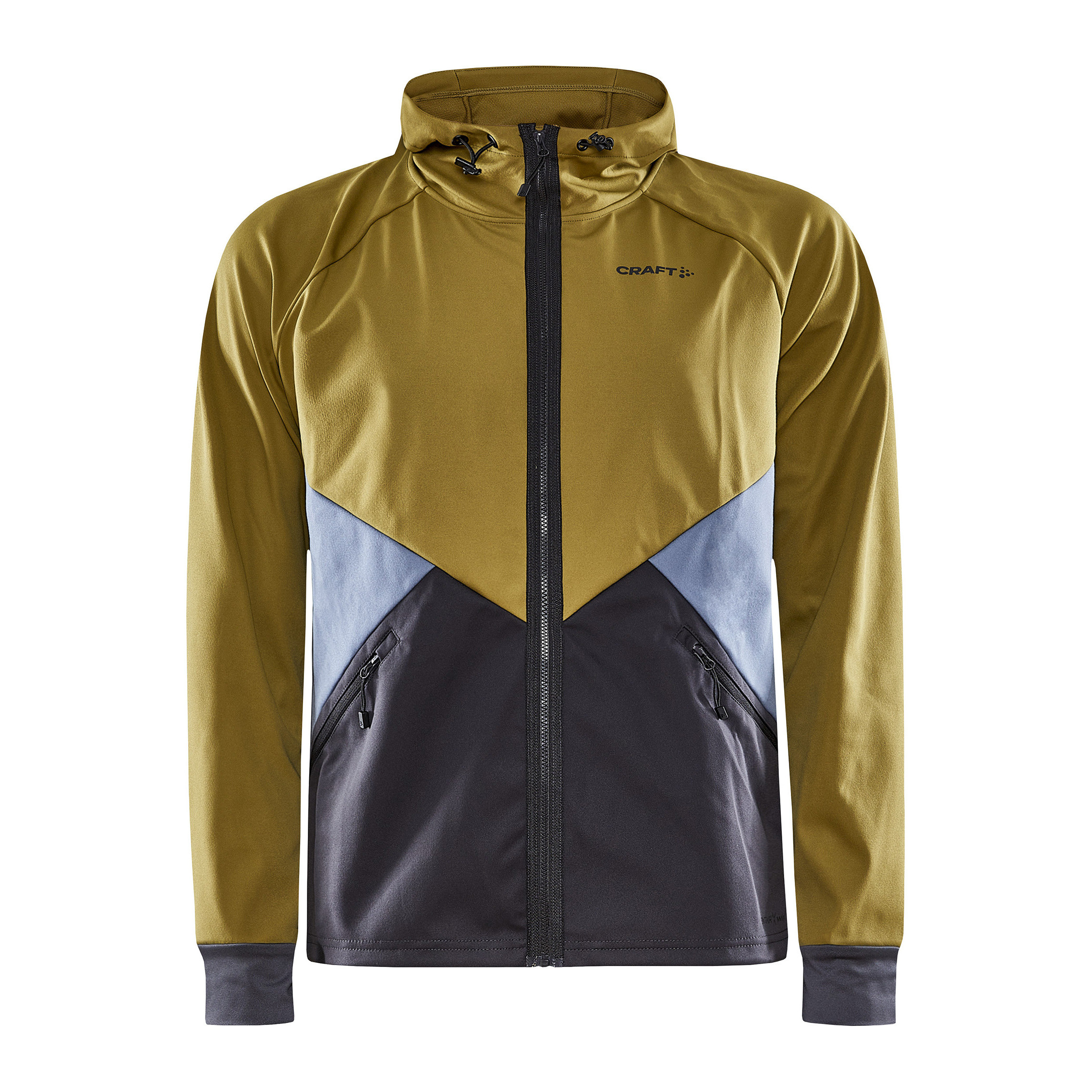 - Chaqueta softshell - Membrana cortaviento - Jersey elástico en los lados y debajo de las mangas - Dos bolsillos con cremallera - Capucha ajustable