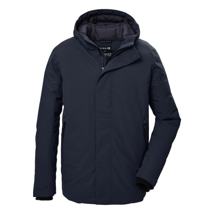 Chaqueta funcional con capucha Ribstop, 100% poliéster (reciclado) 100% poliéster (reciclado) Poliéster liso, 100% poliéster (reciclado) laminado PU transpirable, columna de agua 10.000 mm, permeabilidad al vapor de agua 5.000 g/m²/24 h, costuras selladas, 100% impermeable, sin PFC La chaqueta funcional para hombres de la colección Protección de Killtec acompaña de manera fiable a lo largo de todo el invierno. La chaqueta tiene costuras selladas y es 100% impermeable con una columna de agua de 10.000 mm (atención: se recomienda reimpermeabilizar la chaqueta de vez en cuando). Al mismo tiempo, es transpirable con una permeabilidad al vapor de agua de 5.000 g/m²/24 h. La capucha y los puños de las mangas son ajustables. El dobladillo se puede regular mediante un cordón. Dos bolsillos con cremallera y dos bolsillos interiores ofrecen suficiente espacio de almacenamiento. La cremallera frontal oculta está equipada con un práctico protector de barbilla. La chaqueta de invierno también cuenta con elementos reflectantes a la moda. Killtec se preocupa especialmente por hacer que sus colecciones sean más sostenibles y del futuro. Killtec apuesta por métodos de fabricación más responsables. Por lo tanto, esta chaqueta es sin PFC y ha sido fabricada parcialmente a partir de materiales reciclados. - Chaqueta funcional para hombres con capucha ajustable - costuras selladas, impermeable, transpirable - cremallera con protector de barbilla, bolsillos prácticos - sin PFC, material reciclado - puños de las mangas ajustables con bordes de punto