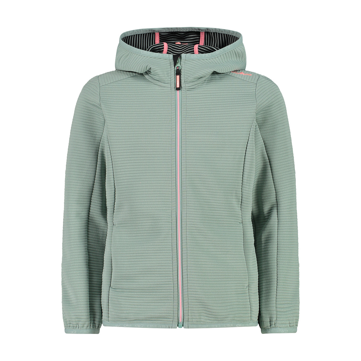 Una polar versátil adecuada para todas las actividades al aire libre. La prenda se caracteriza por su textura horizontal única. Incluye una capucha, un zipper frontal con solapa anti-viento y anti-fricción, dos bolsillos laterales, un dobladillo y puños elásticos.