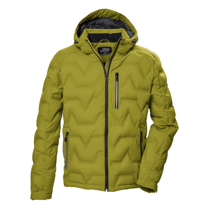 La chaqueta funcional para hombres en aspecto de plumón de Killtec es el todo en uno perfecto para la temporada fría. Es repelente al agua y cortavientos con una columna de agua de 10,000 mm y también es transpirable. Los compartimentos decorativamente soldados hacen de la chaqueta un verdadero foco de atención. La capucha y los puños son ajustables. Los dos bolsillos laterales y el bolsillo en el pecho se cierran con cremalleras, así que nada se pierde. La chaqueta también está equipada con un bolsillo interior. La cremallera delantera cuenta con una protección para el mentón que evita pellizcos en la piel. Esta chaqueta ha sido impregnada con agentes sin flúor y está fabricada en parte a partir de materiales reciclados.