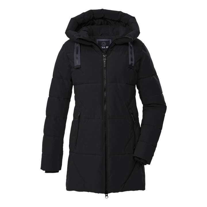 Parka acolchada con capucha Full Dull Polyester Rayas Horizontales, 100% Polyester 100% Polyester Poliéster Uni, 100% Polyester (reciclado) laminado PU transpirable, columna de agua 10.000 mm, permeabilidad al vapor de agua 3.000 g/m²/24 h, repelente al agua, impregnación sin PFAs La parka acolchada bien aislada con una gran capucha de G.I.G.A DX se distingue por su combinación de funcionalidad y estilo casual. La parka es repelente al agua y cortaviento con una columna de agua de 10.000 mm. Al mismo tiempo, es transpirable con una permeabilidad al vapor de agua de 3.000 g/m²/24 h. Los bordes de punto en las muñecas retienen el calor y son especialmente cómodos. La cremallera de 2 vías y los cierres laterales prometen una gran libertad de movimiento. Dos grandes bolsillos con cremallera y un bolsillo interior ofrecen suficiente espacio de almacenamiento para las cosas importantes. killtec está particularmente preocupado por hacer que sus colecciones sean más sostenibles y viables para el futuro. Así, killtec se enfoca cada vez más en procesos de fabricación más responsables. Por lo tanto, esta parka ha sido impregnada sin PFAs y fabricada en parte con materiales reciclados. - Parka funcional para mujeres en look plumón con capucha - repelente al agua (10.000 mm), transpirable, cortaviento - cremallera de 2 vías y cierres laterales - muñecas cómodas de punto - impregnación sin PFAs, material reciclado