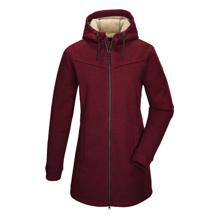 El parka de polar para mujer G.I.G.A. DX, en un estilo de punto trendy, es perfecto para la temporada fría. Tiene dos bolsillos laterales y está forrado con un suave pelo de teddy. La cremallera de 2 vías se abre por arriba y por abajo, lo que ofrece una libertad de movimiento. Además, cuenta con una práctica protección para el mentón. La capucha es ajustable gracias a un cordón. Parka de punto para mujer con capucha ajustable forrada con un suave pelo de teddy cremallera de 2 vías con protección para el mentón estilo de punto dos bolsillos laterales