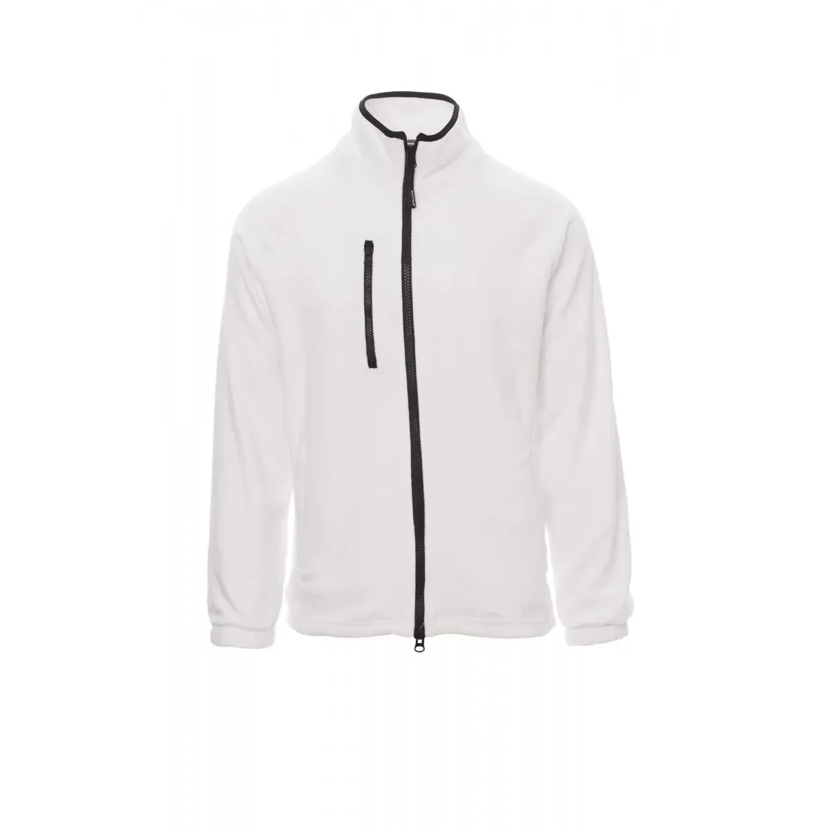 Chaqueta de forro polar para hombre con cremallera completa de 8 mm en plástico negro, mangas raglán, deslizador de cintura ajustable, puños elásticos, dos bolsillos con cremallera cubierta, un bolsillo con cremallera frontal, cuello con ribete en contraste, costuras reforzadas. - Composición: 100% POLIÉSTER - Aspecto: FIBRA POLAR - Peso: 280 GR/MQ - Embalaje: 1/10