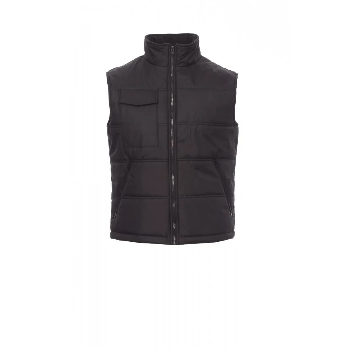Chaleco acolchado con parte trasera perfilada y relleno acolchado, acabado con forro de alta densidad, interior del cuello en polar. Dos grandes bolsillos con cremallera, bolsillo para el teléfono en el pecho y bolsillo interior. - Composición: 100% POLIÉSTER - Aspecto: PONGEE PVC 190T - Peso: 180 GR/MQ - Embalaje: 1/10