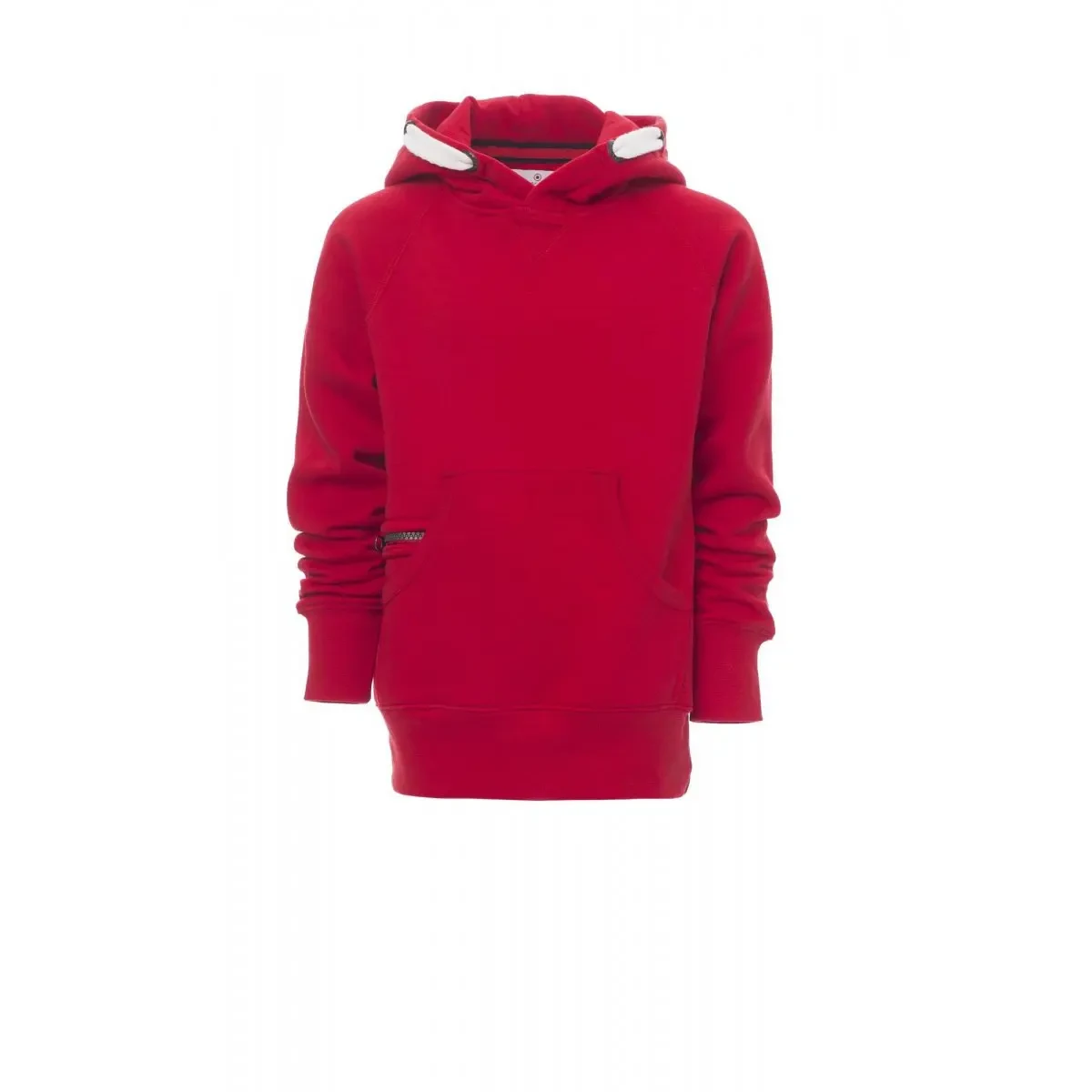 Sudadera para niño, capucha con dos costuras, cordón blanco con costuras a juego en la sudadera, cierre con dobles en metal, mangas raglán, costura estética en V en el cuello, bolsillos tipo canguro, pequeño bolsillo con cremallera, puños y cintura en canalé elástico, costuras reforzadas. - Composición: 70% ALGODÓN + 30% POLIESTER - Aspecto: CEPILLADO - Peso: 300 GR/MQ - Embalaje: 1/20