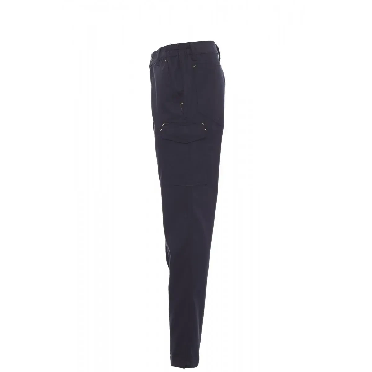 Pantalón con trabillas y cintura elástica, cierre con cremallera y botón . Costuras de doble aguja en la entrepierna y en el interior de la pierna, pequeño bolsillo para monedas, porta-metro en el lado derecho, bolsillo en el lado izquierdo con solapa de cierre LOCK SYSTEM, dos bolsillos traseros, uno con solapa y velcro. - Composición: 100% ALGODÓN - Aspecto: SANFOR TWILL - Peso: 260 GR/MQ - Embalaje: 1/25