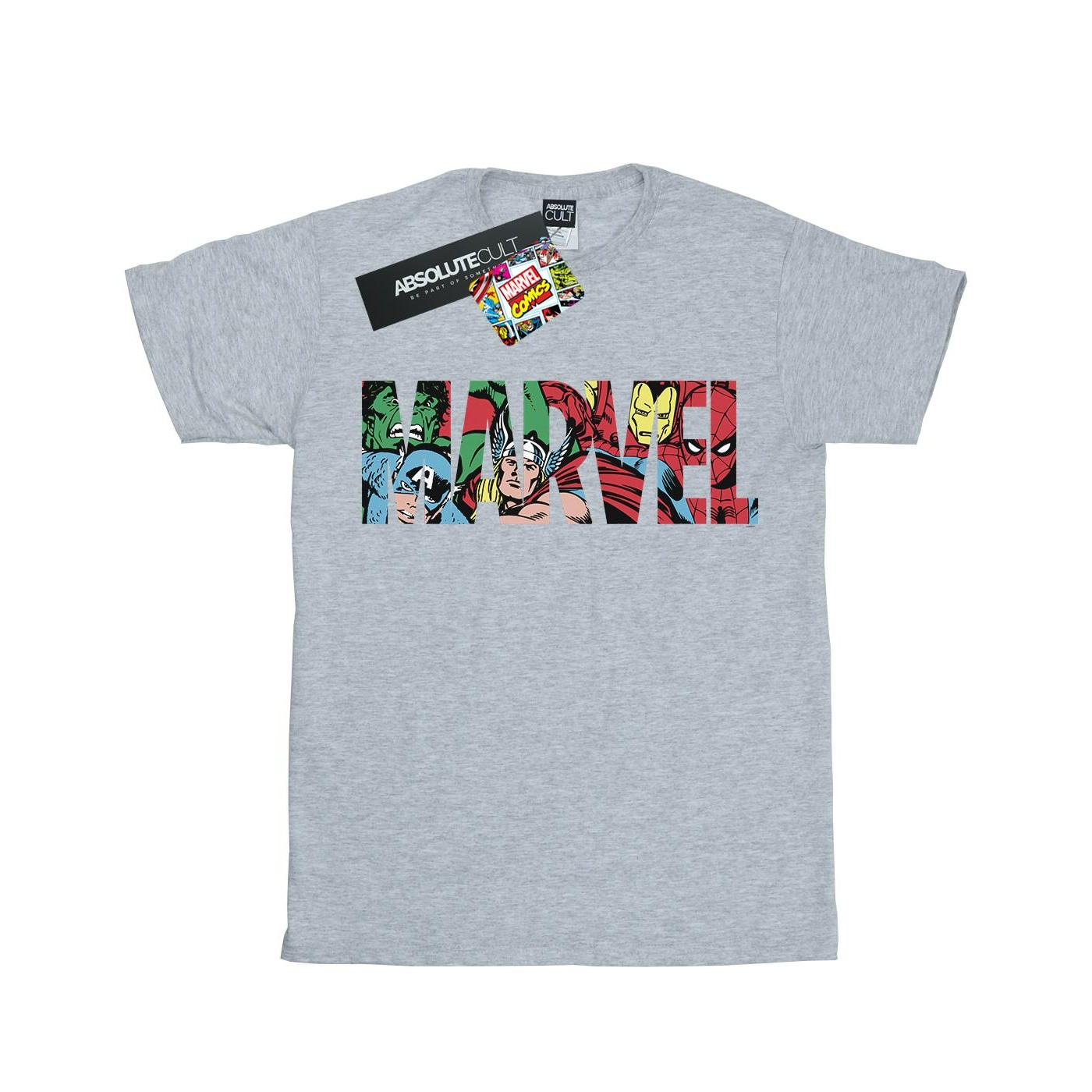 Marvel Comics - Camiseta Logotipo Niños (Gris Deportivo)