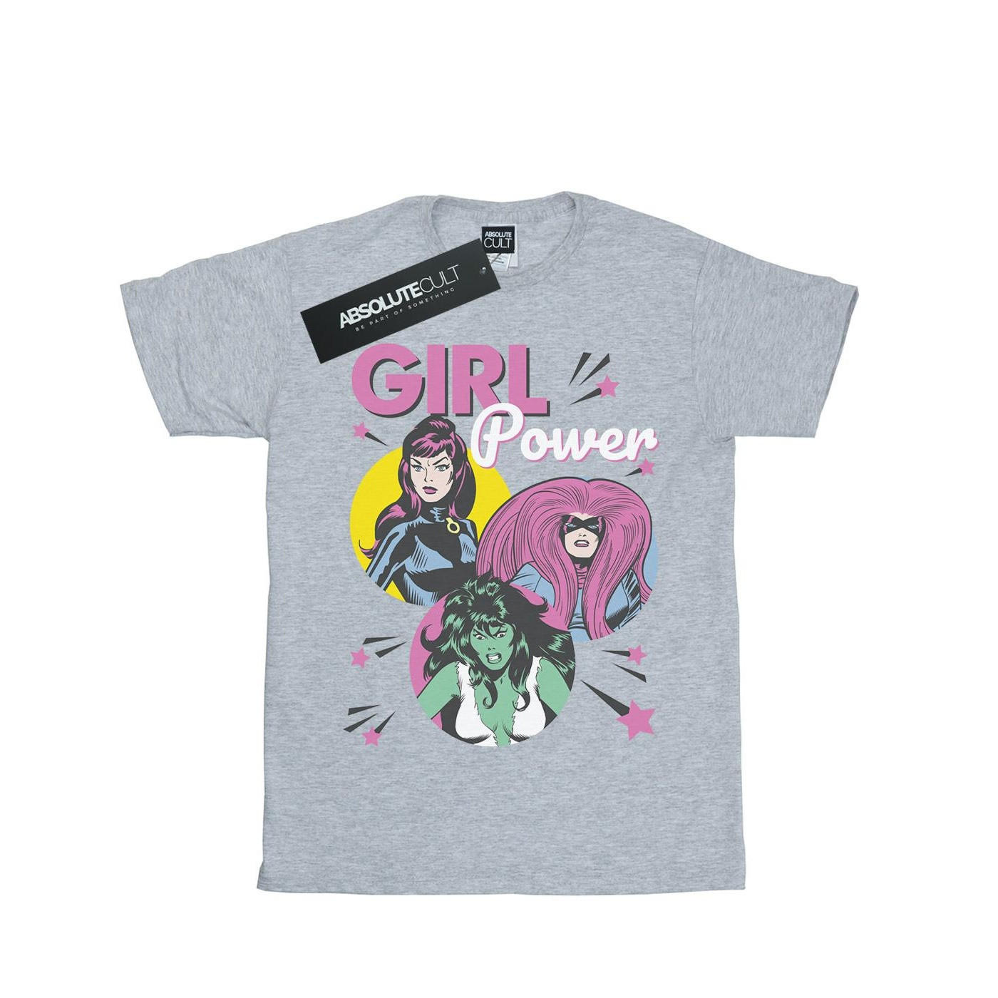 Marvel Comics - Camiseta Girl Power de Algodón Niñas (Gris Deportivo)