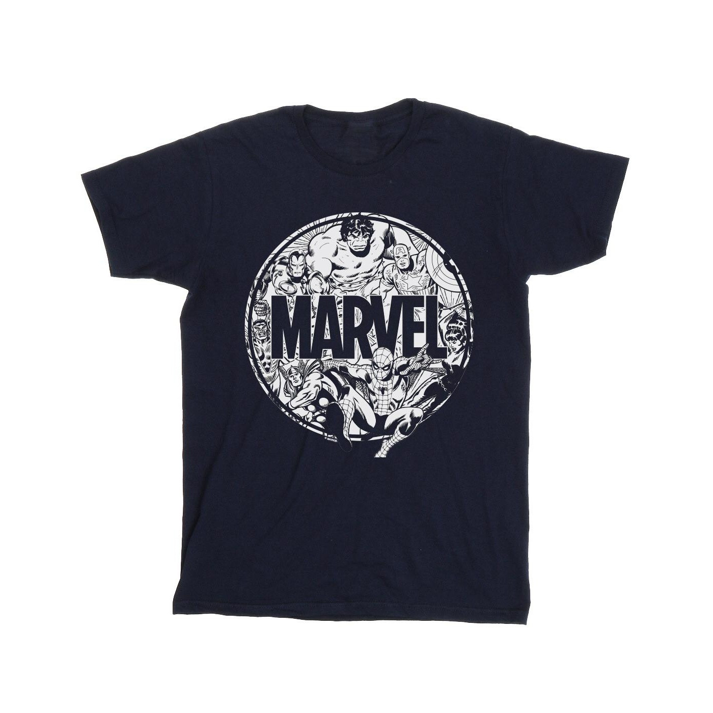 100% Algodón. Marca: Marvel Comics. Tejido: Medio. Diseño: Impreso. Cuello: Cuello Redondo, Licra Acanalado. Tipo de Manga: Manga Corta. Costura Puntada Simple, Supersoft. 100% Licencia Oficial. 153gsm. Embalaje: Etiqueta Oscilante.