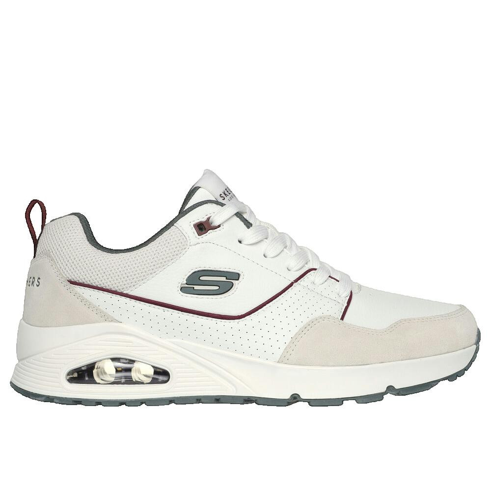 El estilo retro del jogging se encuentra con la comodidad en la Skechers Street™ Uno - Retro One. Esta zapatilla de jogging con cordones y estilo retro cuenta con un refuerzo de empeine en cuero duro, cuero y gamuza, una plantilla de espuma viscoelástica Skechers Air-Cooled Memory Foam® ventilada y una entresuela translúcida con cojín de aire Skech-Air®. Características principales: plantilla cómoda Skechers Air-Cooled Memory Foam®, entresuela Skech-Air® visible con cojín de aire. Detalles de diseño: empeine de cuero, gamuza y cuero duro, zapatilla de jogging retro con cordones, suela exterior flexible, tacón de 3,8 cm, detalle del logo Skechers®.