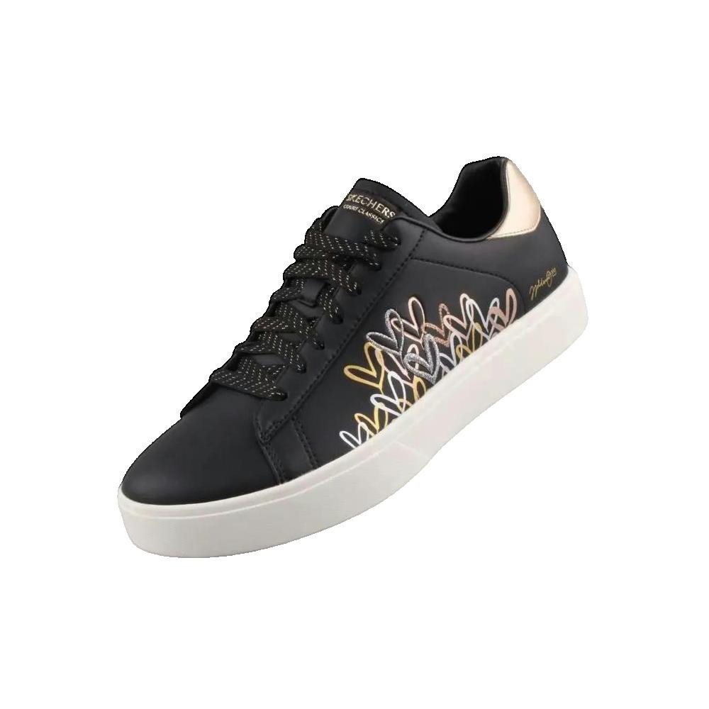 Descubra las Skechers Eden Lx, zapatillas lifestyle elegantes y cómodas diseñadas para mujeres adultas. Este modelo único, fruto de una colaboración con el artista James Goldcrown, se distingue por sus emblemáticos motivos de corazón. La parte superior de cuero sintético garantiza durabilidad y estética, mientras que la entresuela plataforma de 3.2 cm y la tecnología de confort Skechers Air-Cooled Memory Foam® ofrecen un soporte óptimo. Perfectas para el uso diario, estas zapatillas combinan estilo y funcionalidad, ideales para cualquier ocasión.