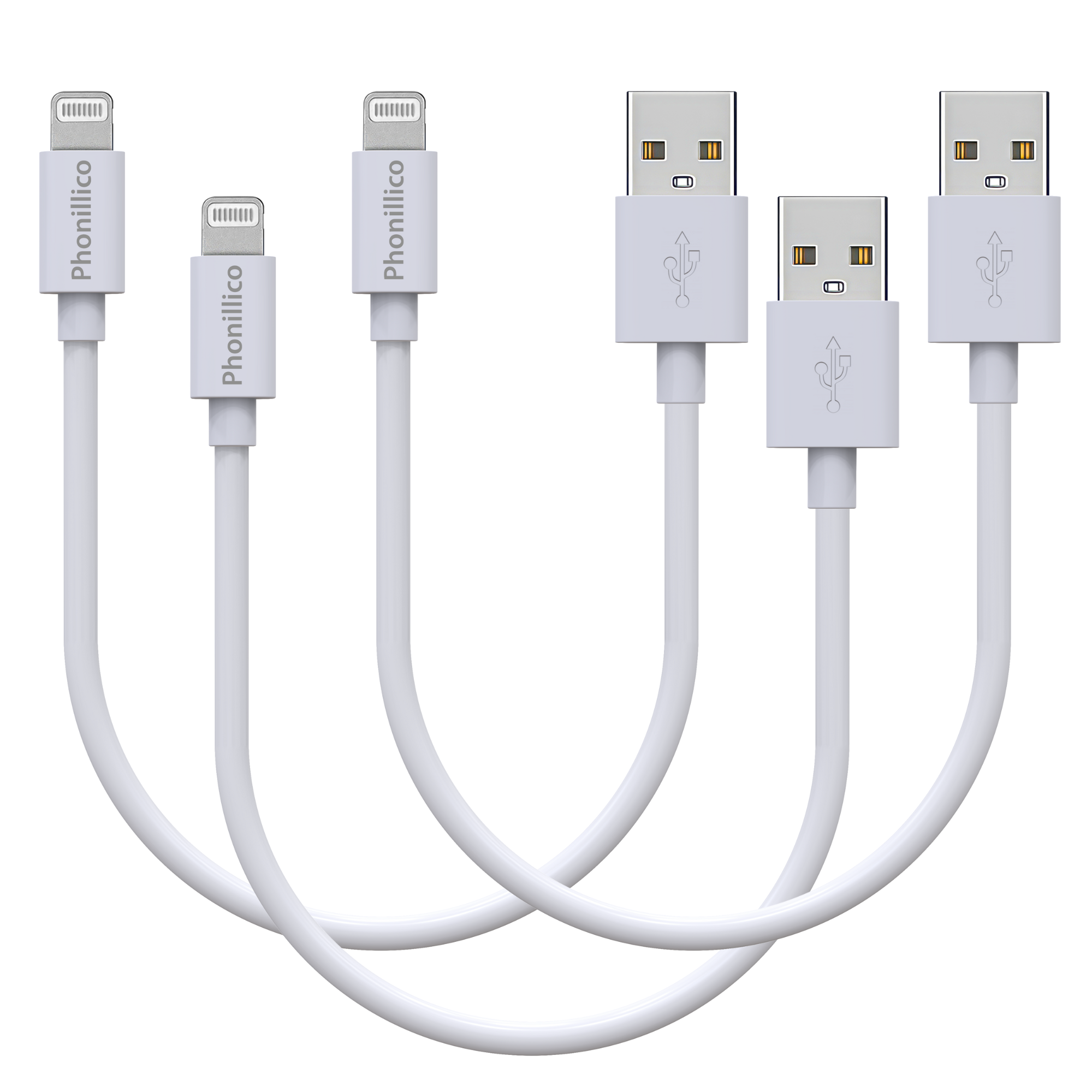 Juego de 3 cables USB Lightning de 20 cm blancos para iPhone Phonillico®