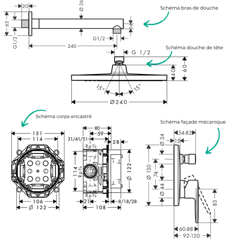 Para más información, consulta las fichas técnicas de los productos que componen tu columna de ducha empotrada HANSGROHE.