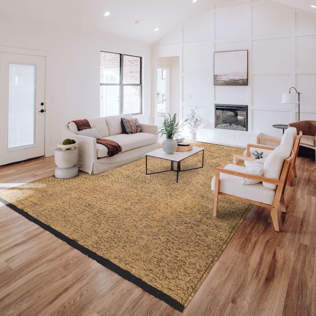 Alfombra de algodón y poliéster lavable, plana beige 160x230