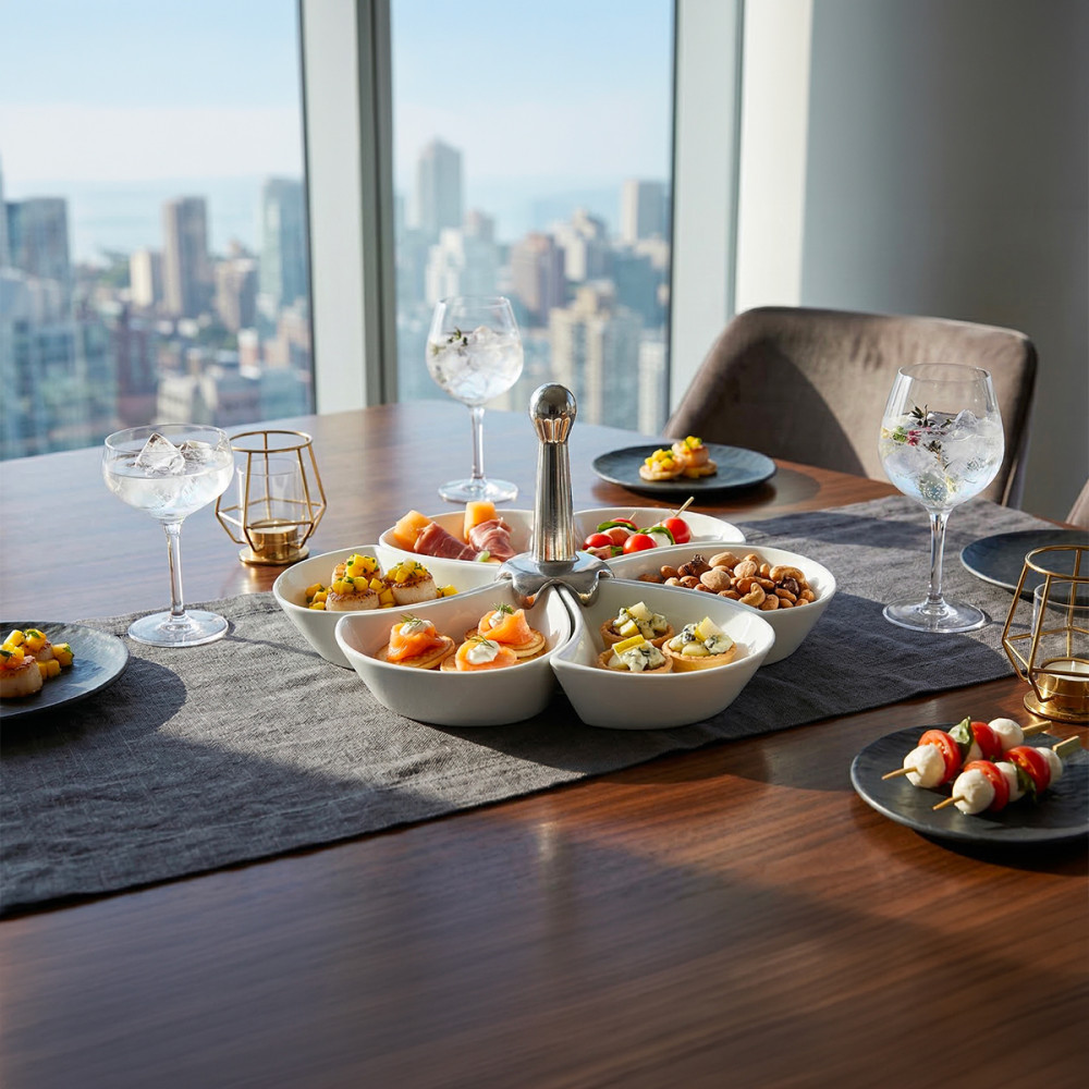 3432/01 - Lote de 6 cuencos de aperitivo - AULICA Descubra la elegancia convivial del juego de aperitivos Aulica, un conjunto refinado que combina diseño sofisticado y funcionalidad óptima, perfecto para realzar sus momentos de compartir y degustar; fabricado con materiales de alta calidad y con un acabado meticuloso, este juego de aperitivos ofrece una solución elegante y duradera para presentar sus amuse-bouches, tapas y otras delicias, transformando cada aperitivo en una experiencia estética y placentera, a la vez que añade un toque de sofisticación a sus recepciones y veladas con amigos. Nuestros juegos de aperitivo se elaboran de forma artesanal y única, añadiendo encanto y autenticidad y celebrando la individualidad de cada creación. Empaquetamos todas nuestras vajillas con sumo cuidado para evitar roturas. Especificaciones: - Color : Blanco - Material : Porcelana - Dimensiones : 12x12x15.5 cm - Apto para lavavajillas : SI - Compatible con microondas : NO - Compatible con horno : NO Puede reciclar los envases de nuestros productos en los contenedores amarillos