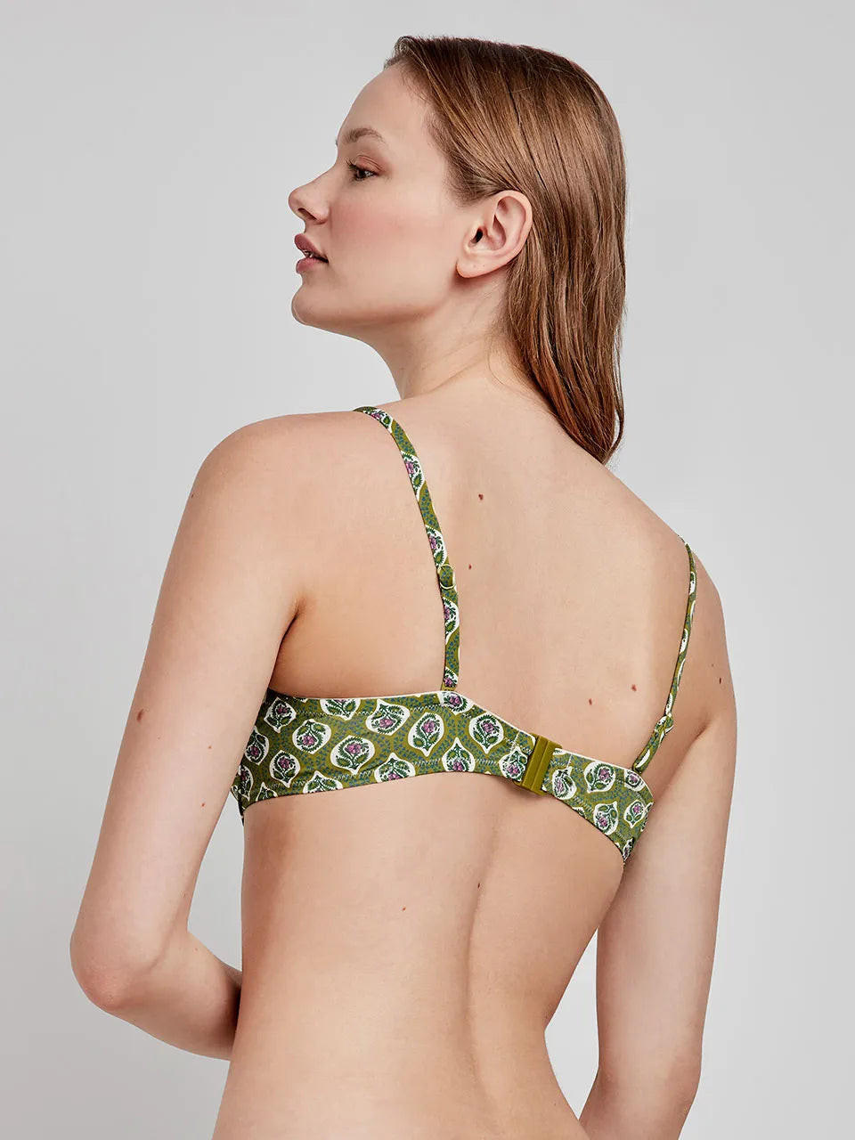 Top bikini bandeau con aro y foam en tejido estampado. Tirantes desmontables y regulables y cierre trasero. Disponible en copas B y C. Combínalo con su braguita bikini a juego.
