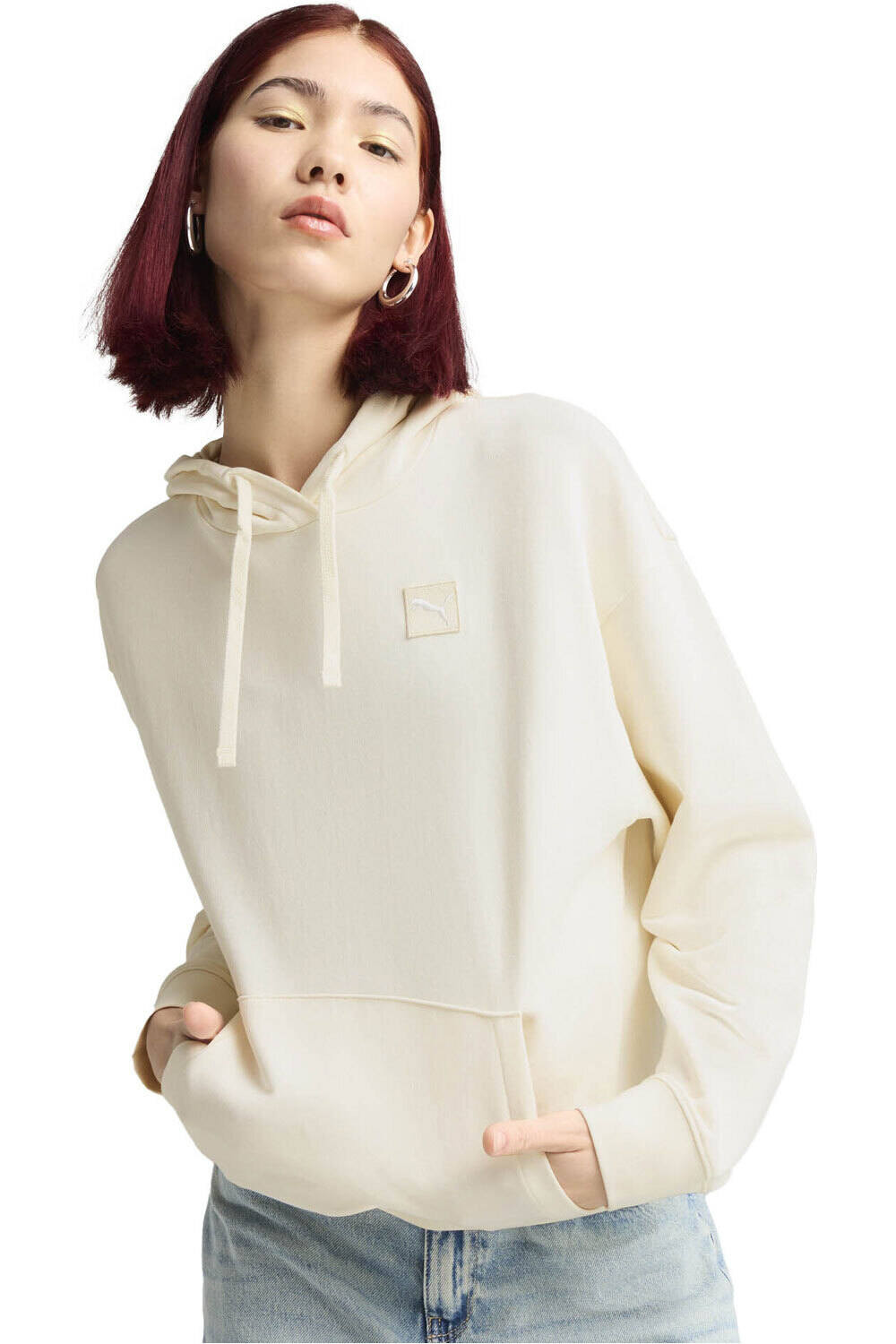 Sudadera con capucha Puma ESS ELEVATED para mujer en color Beige de la temporada Primavera-Verano 2025.
