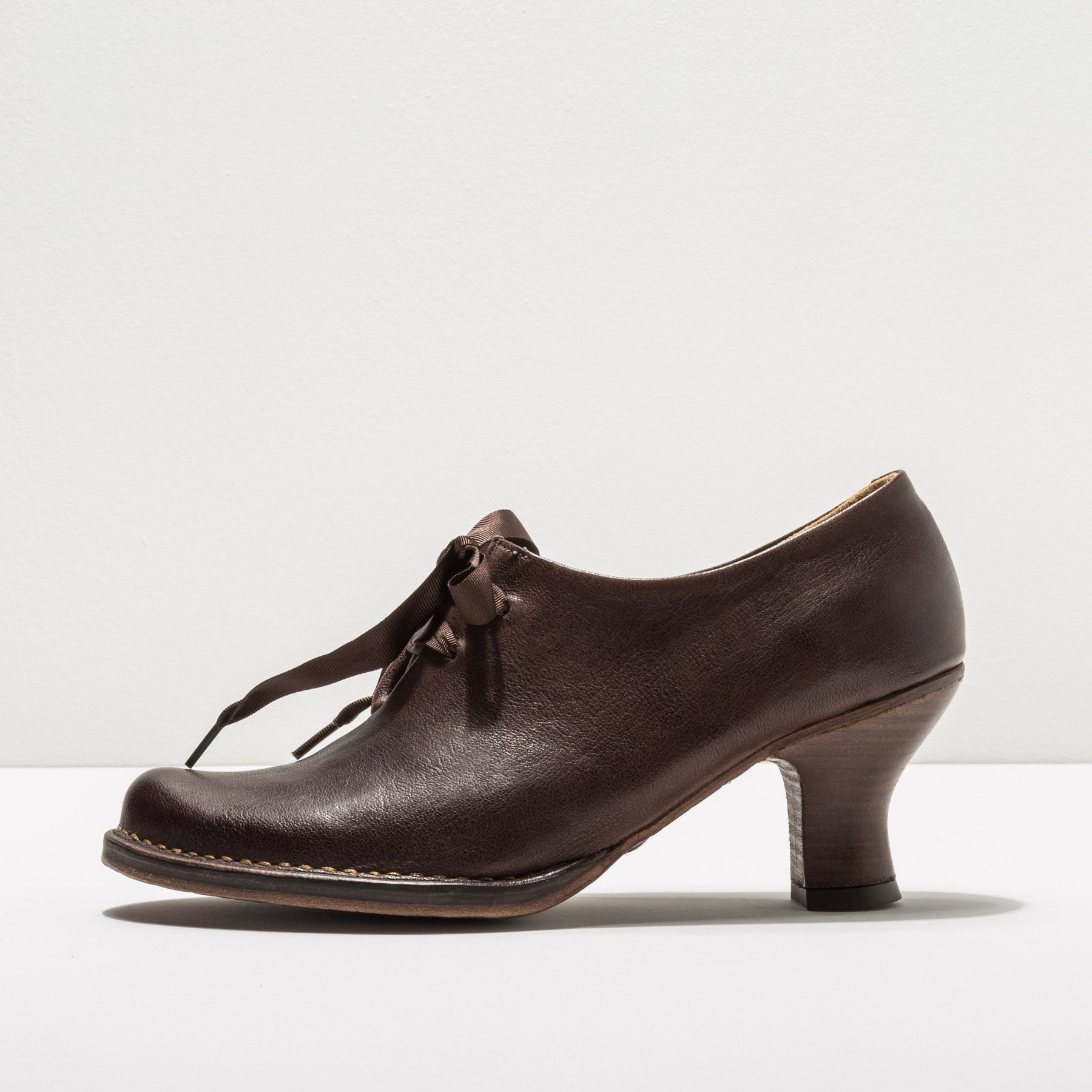Zapatos y botines de estilo retro que incorpora un tacón carrete de inspiración años 20. Construido de forma artesanal con materiales naturales hacen de este un grupo muy elegante y vestido, esencia Neosens.